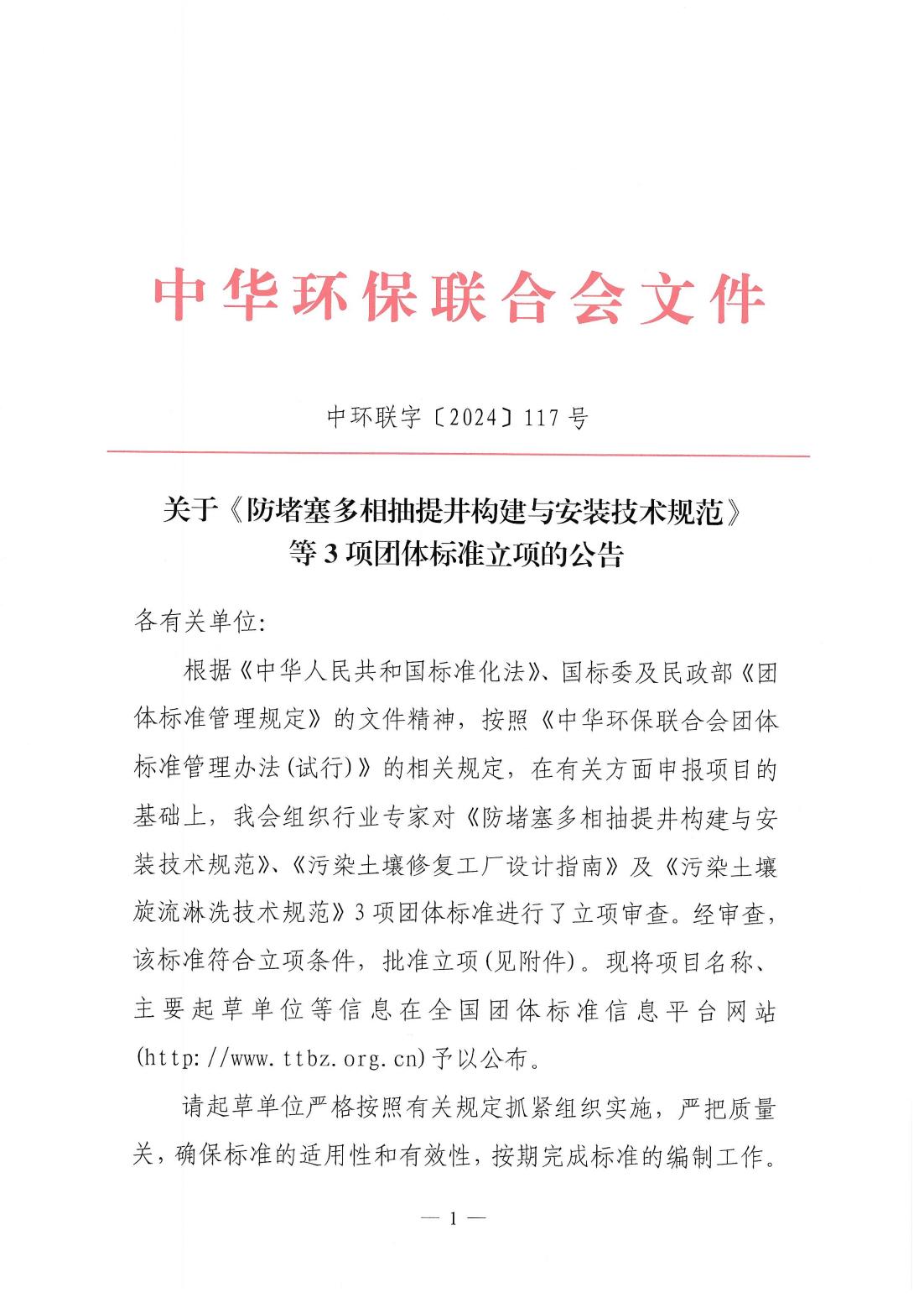 关于《防堵塞多相抽提井构建与安装技术规范》等3项团体标准立项的公告