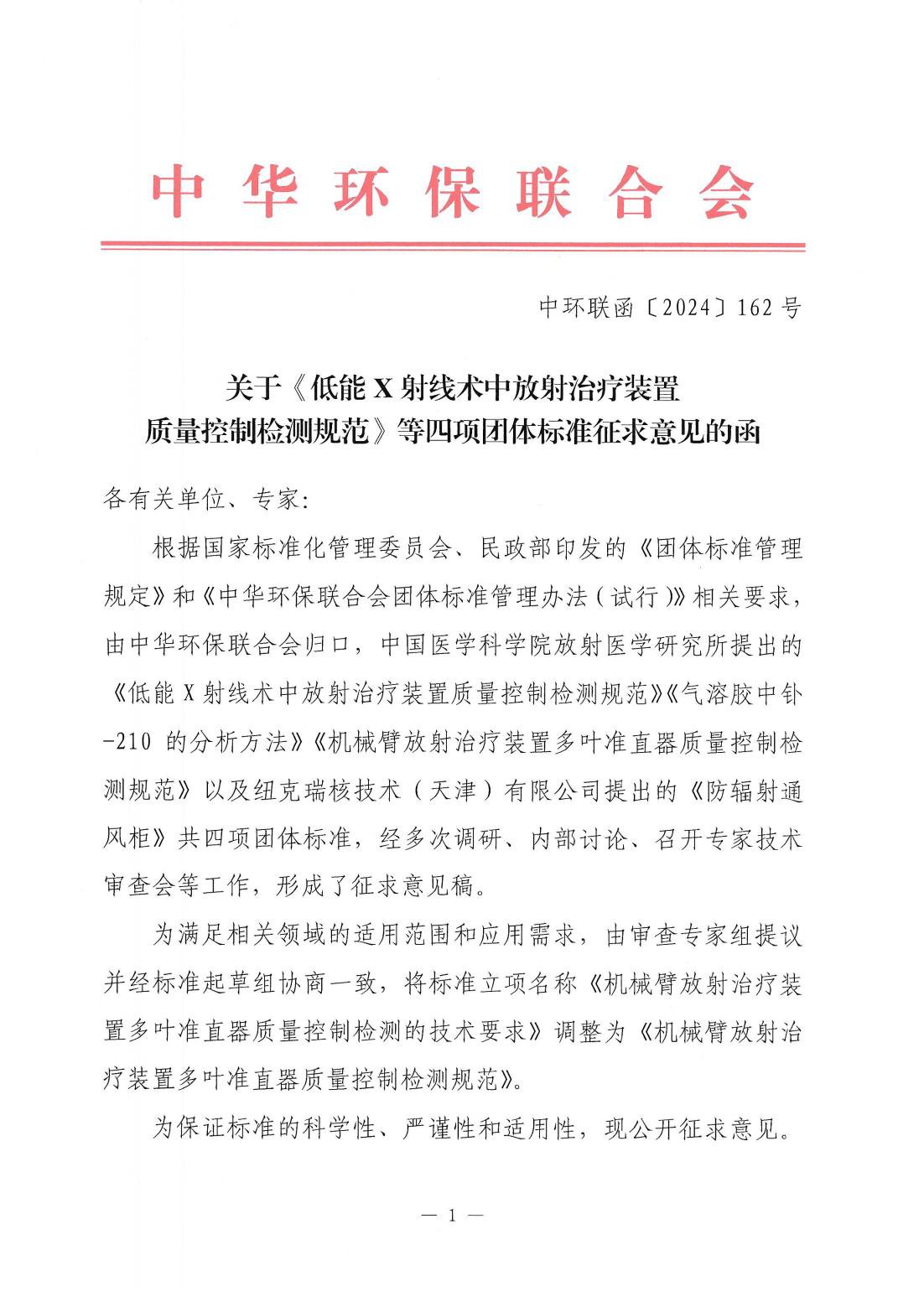 1.《低能X射线术中放射治疗装置质量控制检测规范》(征求意见稿) |