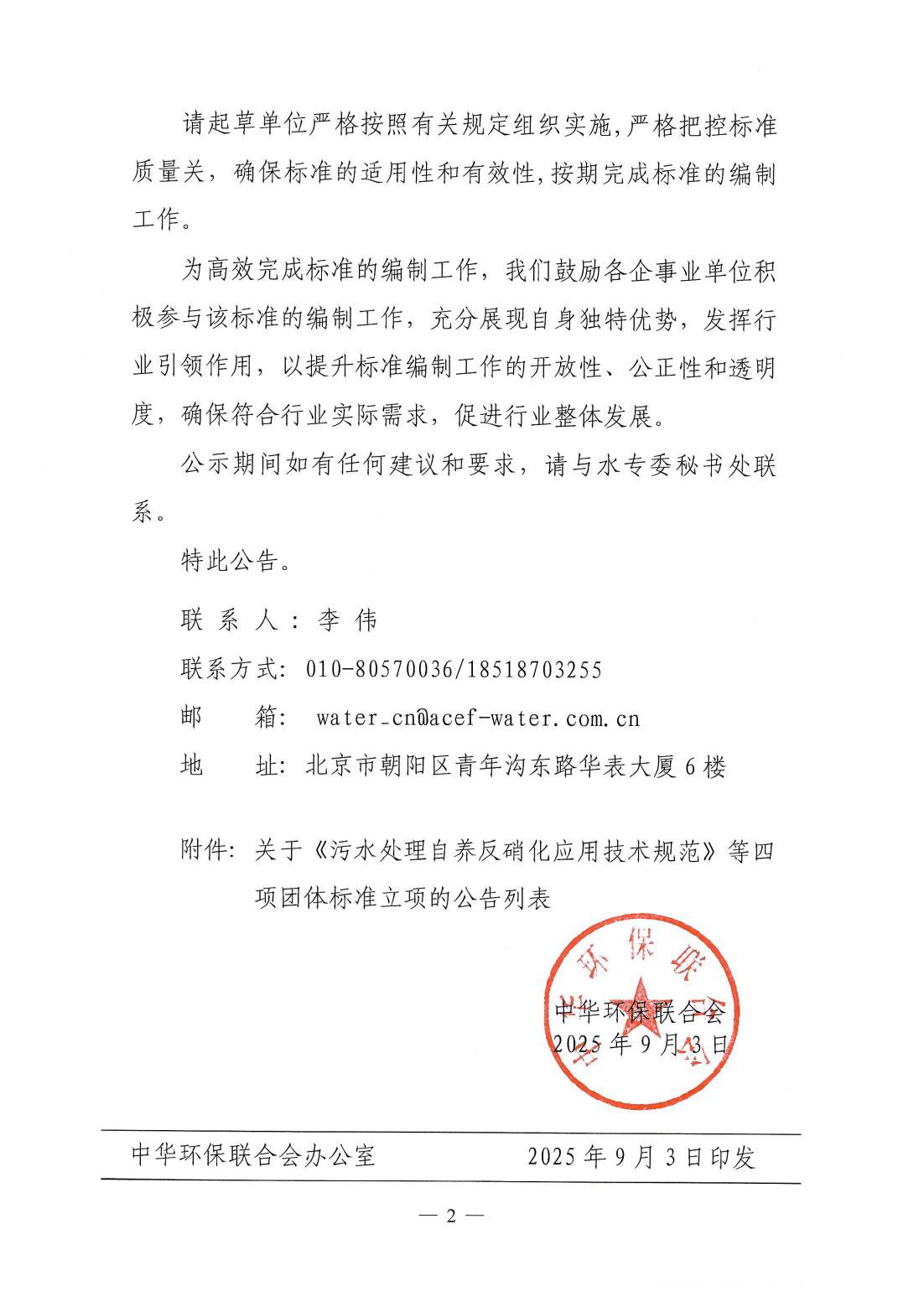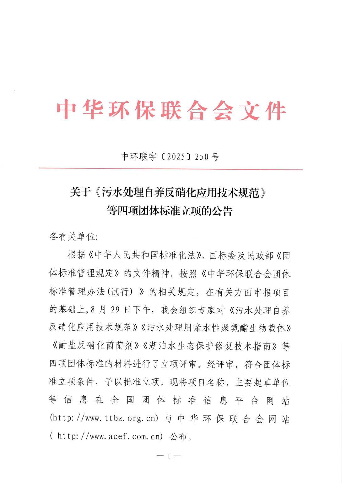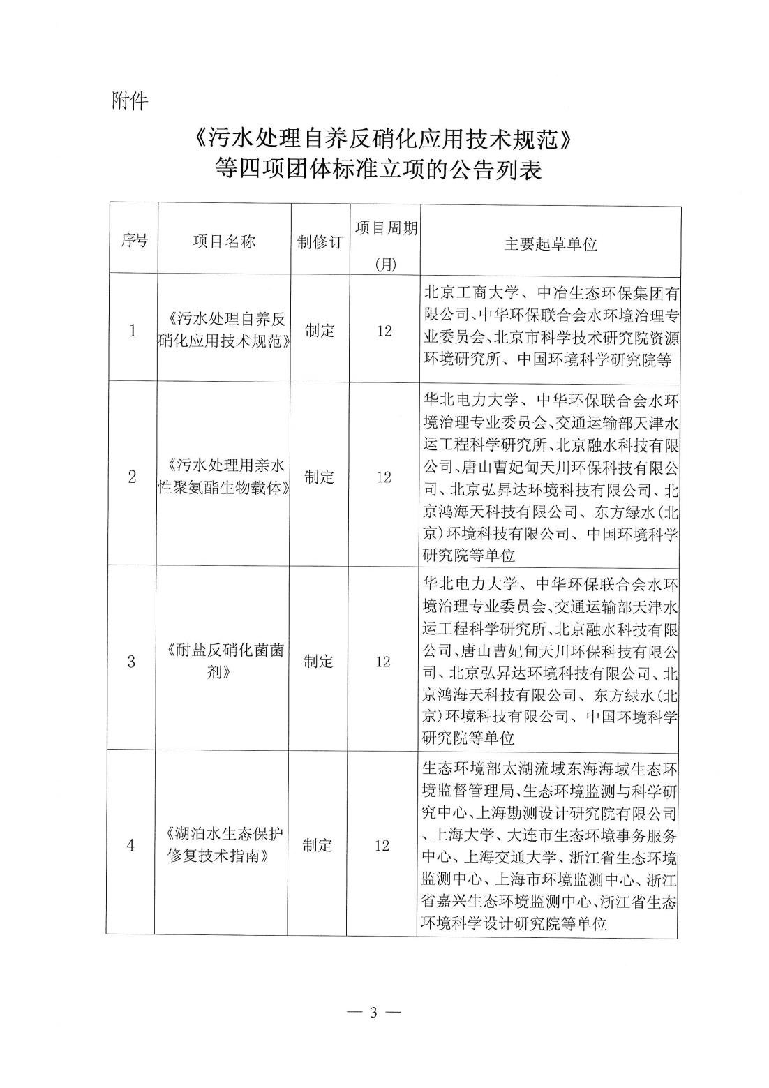 关于《污水处理自养反硝化应用技术规范》等四项团体标准立项的公告
