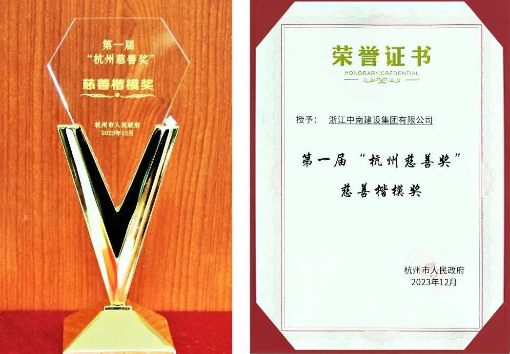 中南集团获第一届“杭州慈善奖”慈善楷模奖