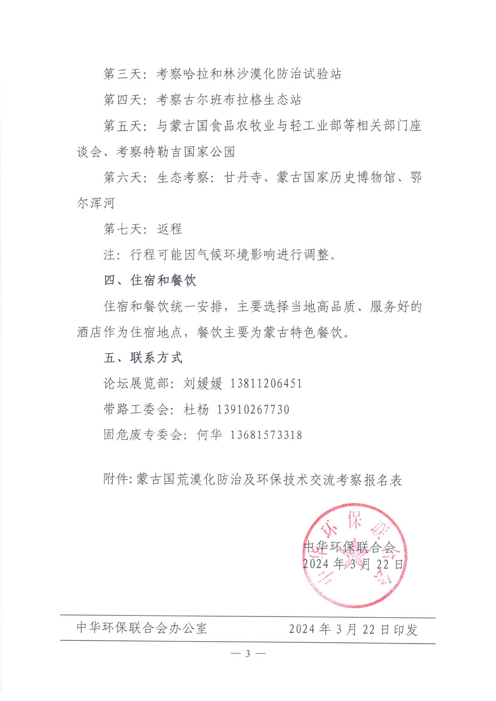 为了推动中蒙荒漠化防治及环保技术的交流与合作,为了增进两国人民的友谊,构建人类命运共同体,我会拟于7月14日-20日组织代表团赴蒙古国首都乌兰巴托交流考察。