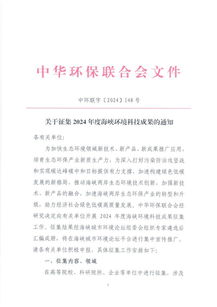关于征集2024年度海峡环境科技成果的通知