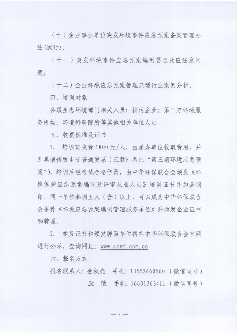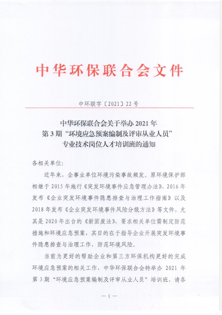 关于举办2021年第3期“环境应急预案编制及评审从业人员”专业技术岗位人才培训班的通知