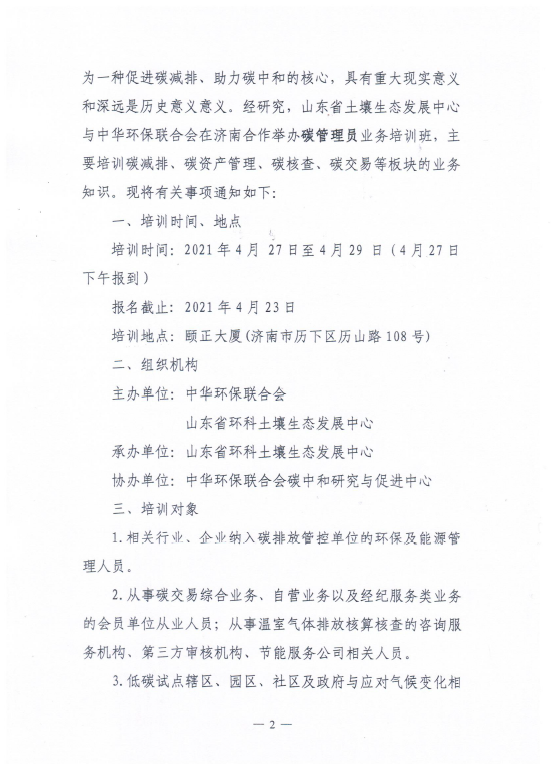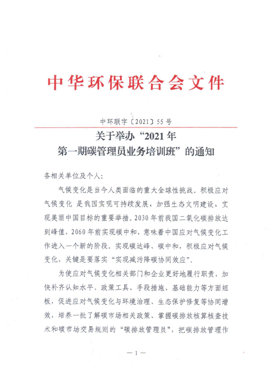 关于举办“2021年第一期碳管理员业务培训班”的通知