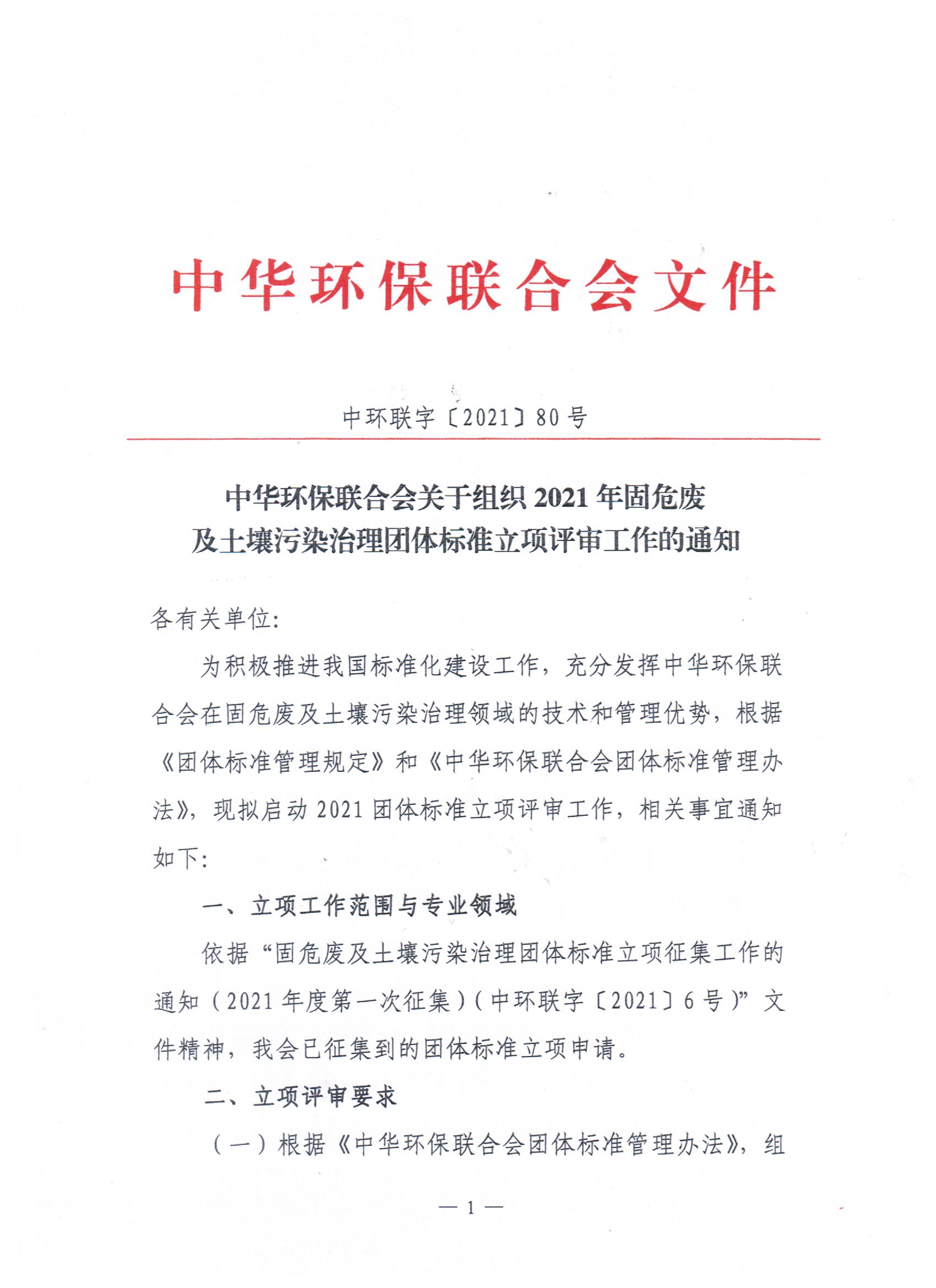 关于组织2021年固危废及土壤污染治理团体标准立项评审工作的通知