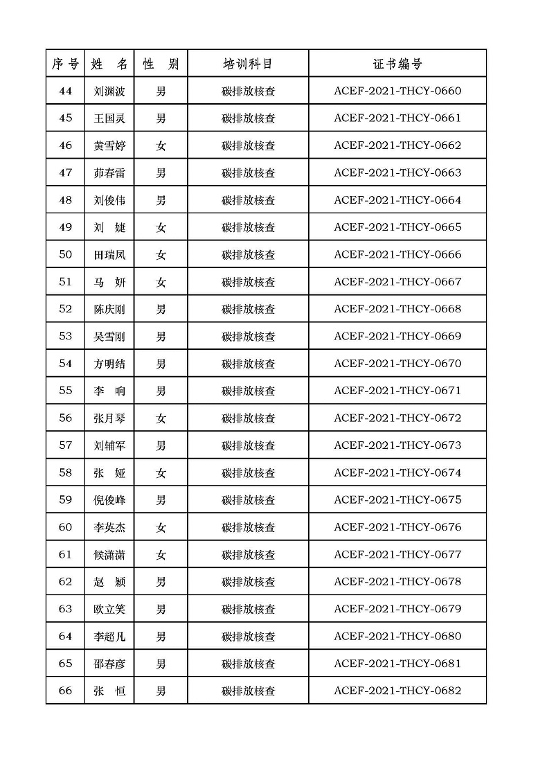 2021年第6期“碳排放管理(碳排放核算员、碳排放核查员)技术培训班”合格学员公示