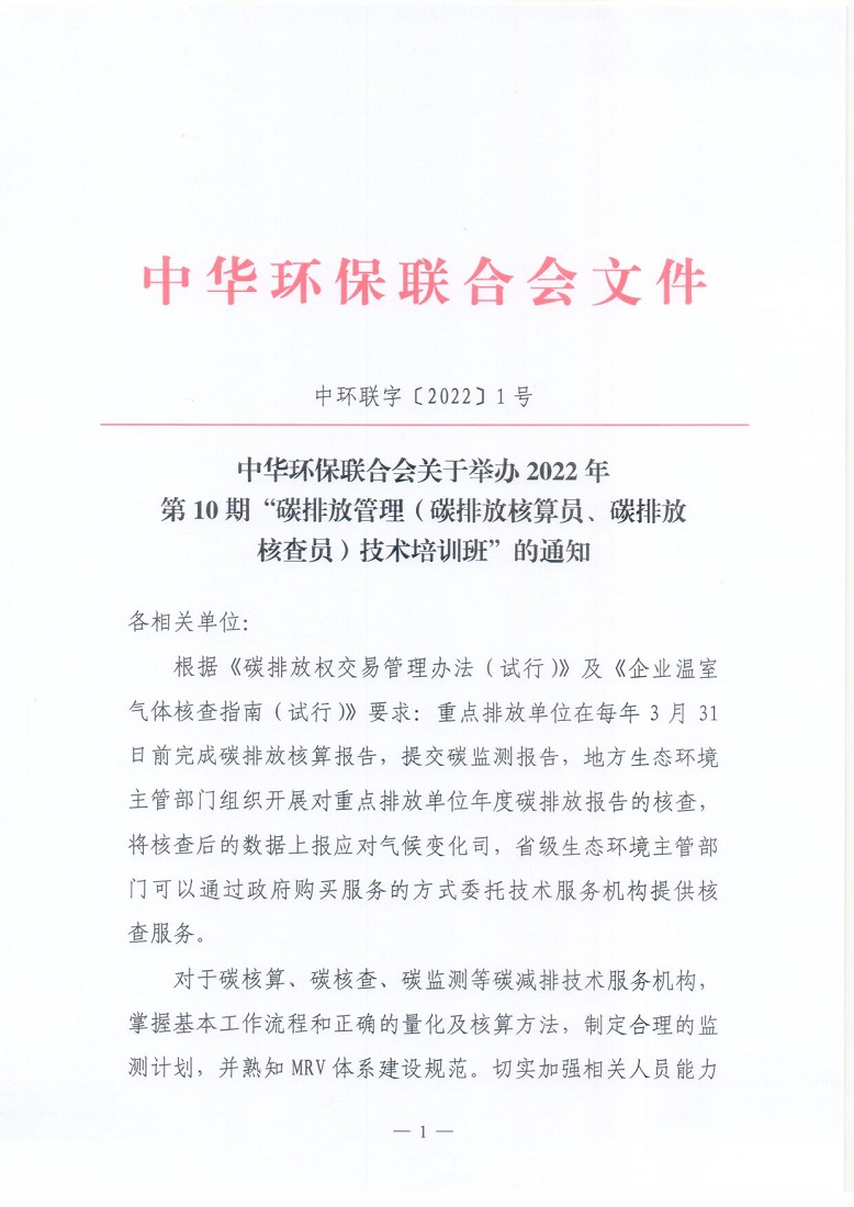 关于举办2022年第10期“碳排放管理(碳排放核算员、碳排放核查员)技术培训班”的通知
