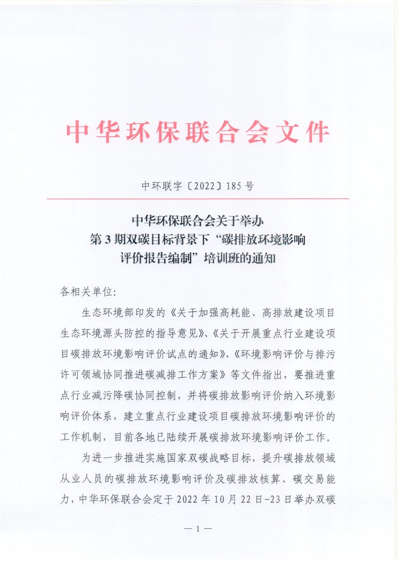 关于举办第3期双碳目标背景下“碳排放 环境影响评价报告编制”培训班的通知