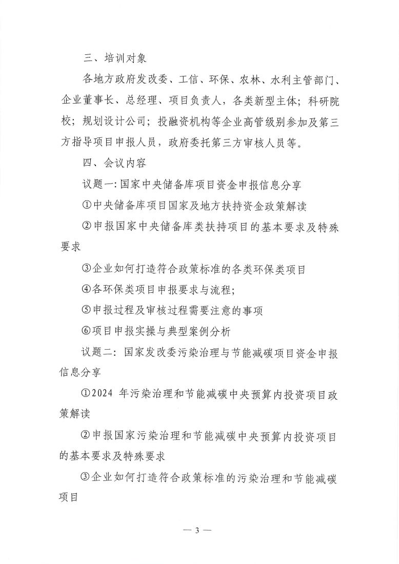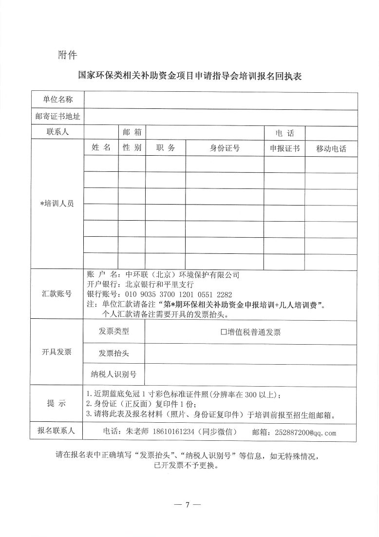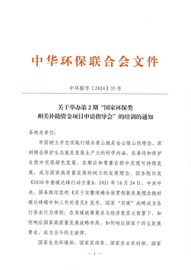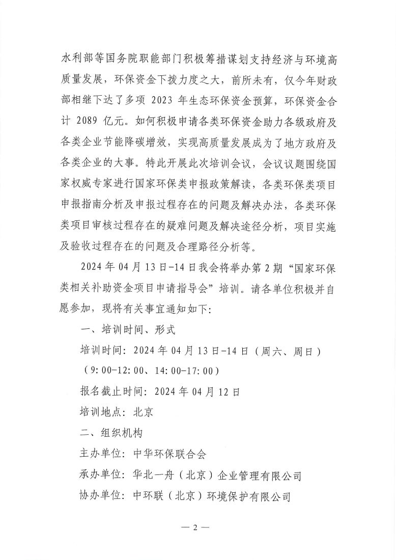 关于举办第2期“国家环保类相关补助资金项目申请指导会”的培训通知