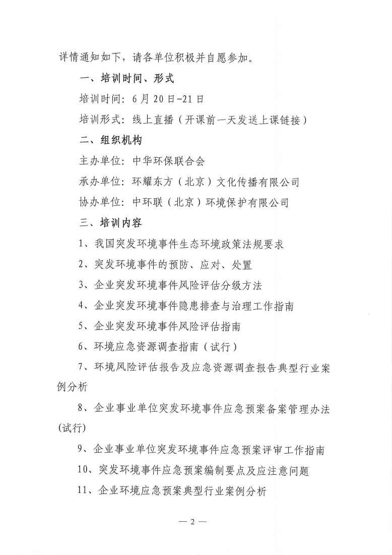 关于举办第20期“环境应急预案编制与 评审从业人员”培训班的通知