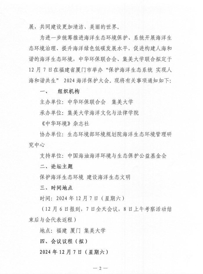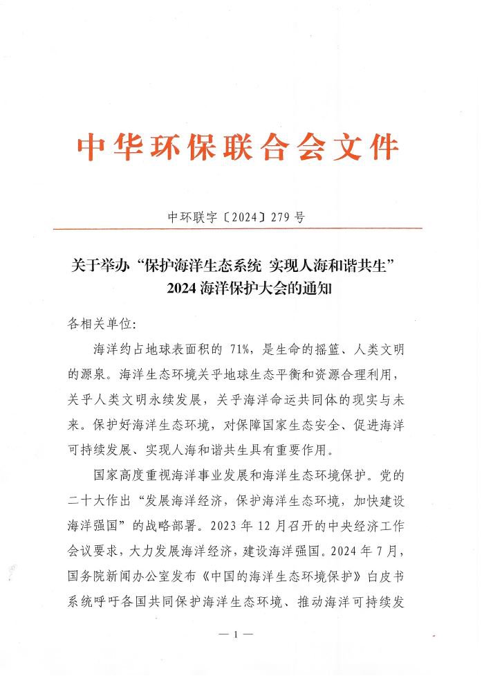 关于举办“保护海洋生态系统 实现人海和谐共生”2024海洋保护大会的通知
