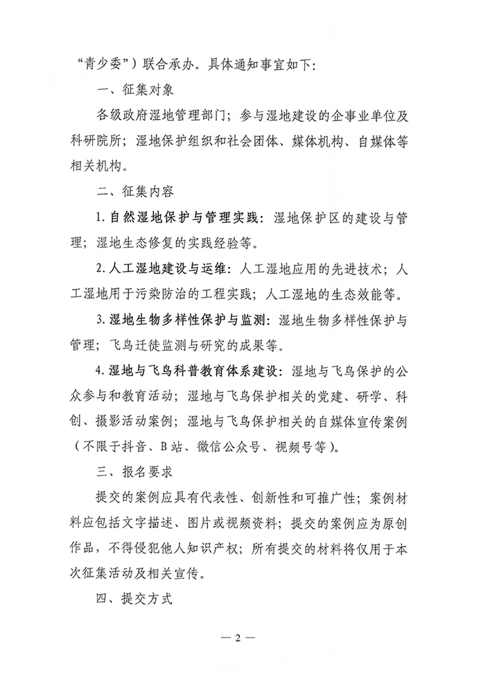 关于征集《生物多样性友好湿地案例》的通知