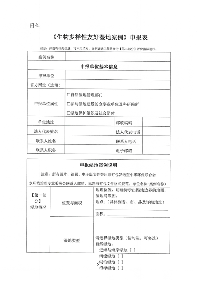 附件:《生物多样性友好湿地案例》报名表