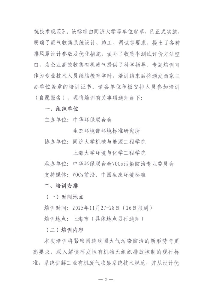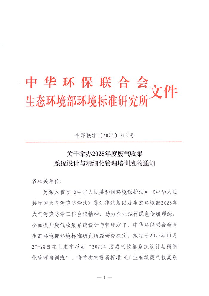 关于举办废气收集系统设计与精细化管理培训班的通知