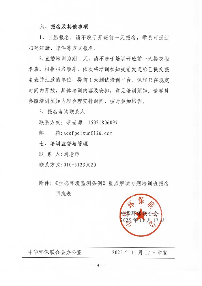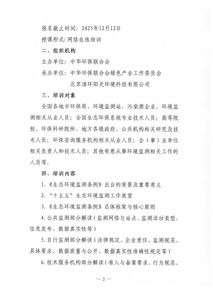 关于举办第1期“《生态环境监测条例》重点解读专题培训班”的通知