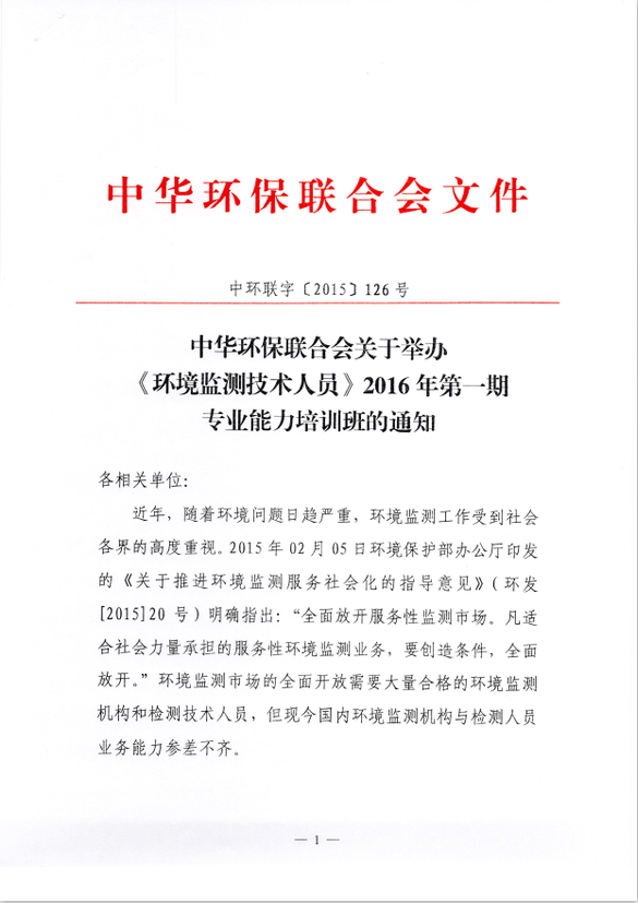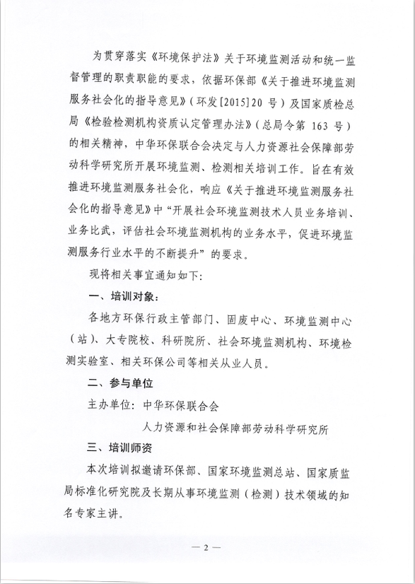 18luck官网app关于举办《环境技术检测人员》2016年第一期专业能力培训班的通知