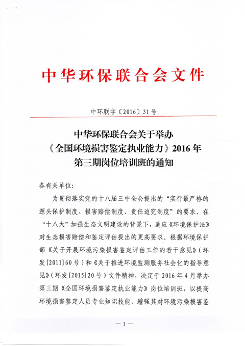 18luck官网app关于举办《全国环境损害鉴定执业能力》2016年第三期岗位培训班的通知