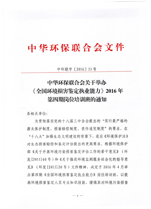 18luck官网app关于举办《全国环境损害鉴定执业能力》2016年第四期岗位培训班的通知