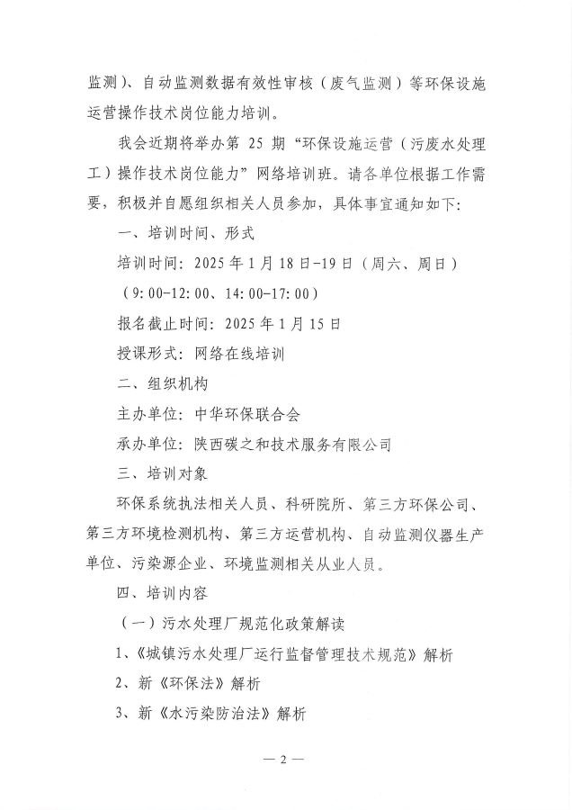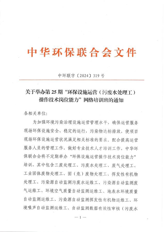 关于举办第25期“18luck新利苹果(污废水处理工)操作技术岗位能力”网络培训班的通知