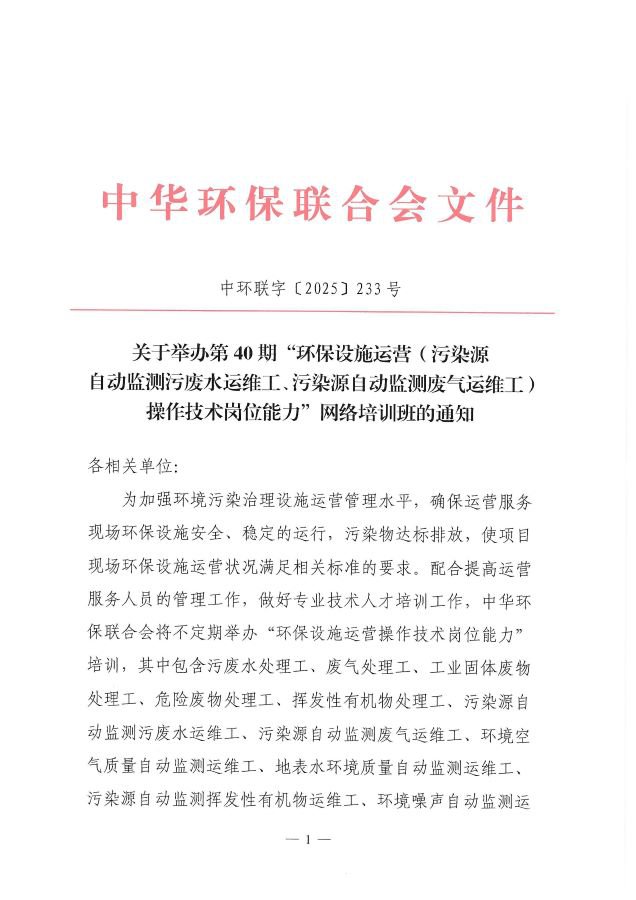 关于举办第40期“18luck新利苹果(污染源自动监测污废水运维工、污染源自动监测废气运维工)操作技术岗位能力”网络培训班的通知