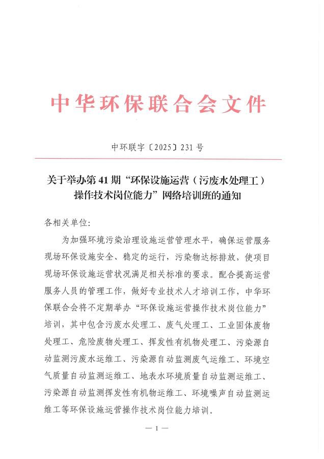 关于举办第41期“18luck新利苹果(污废水处理工)操作技术岗位能力”网络培训班的通知