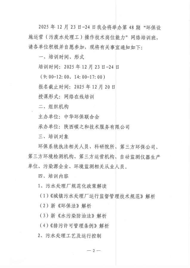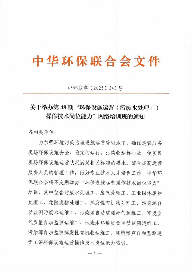 关于举办第48期“18luck新利苹果(污废水处理工)操作技术岗位能力”网络培训班的通知