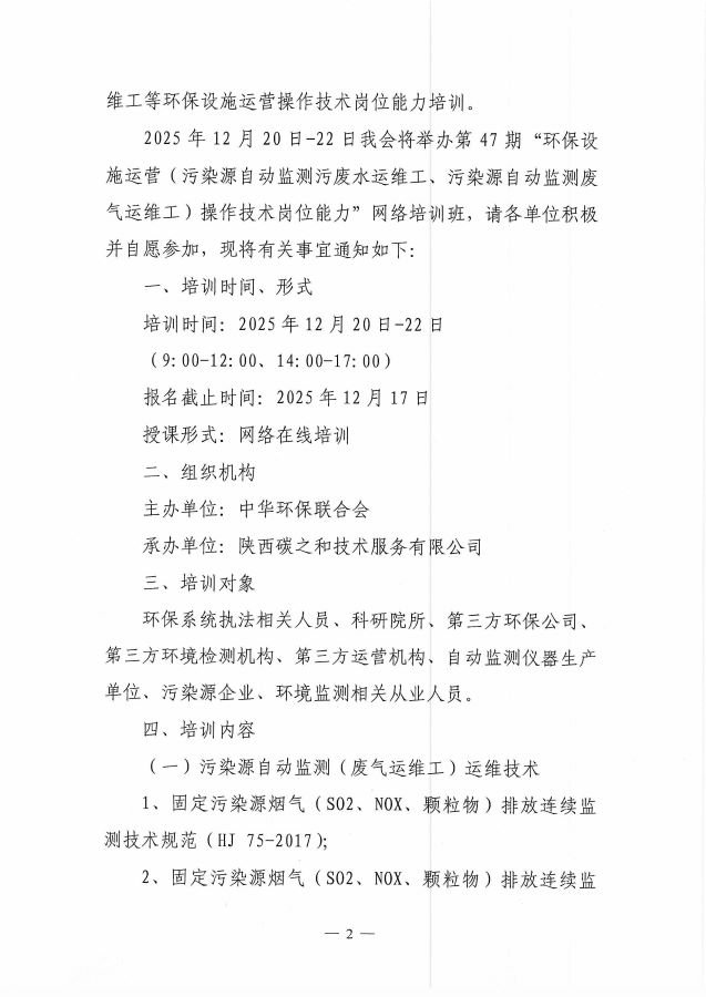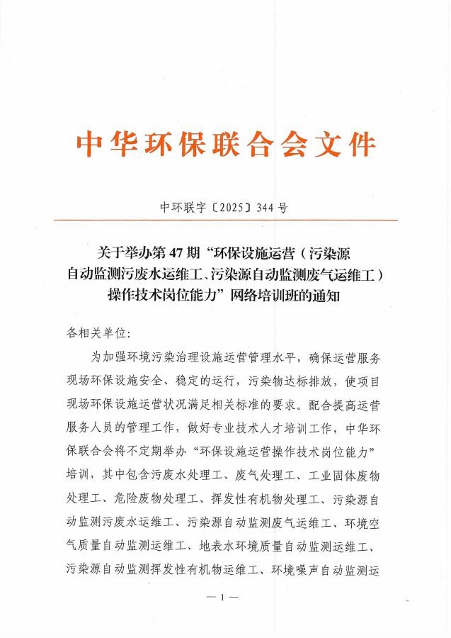 关于举办第47期“18luck新利苹果(污染源自动监测污废水运维工、污染源自动监测废气运维工)操作技术岗位能力”网络培训班的通知