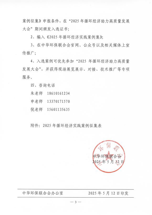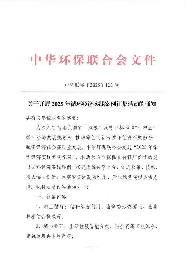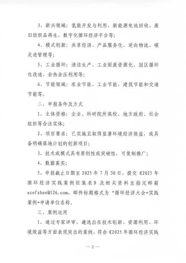 关于开展2025年循环经济实践案例征集活动的通知