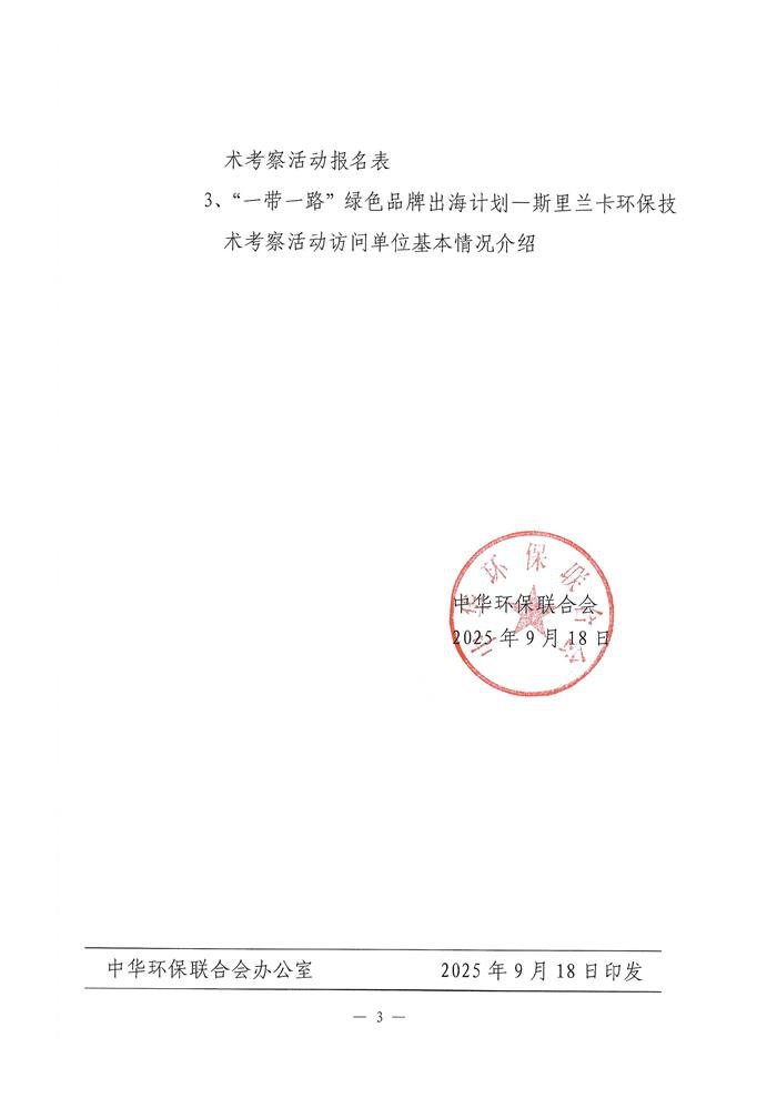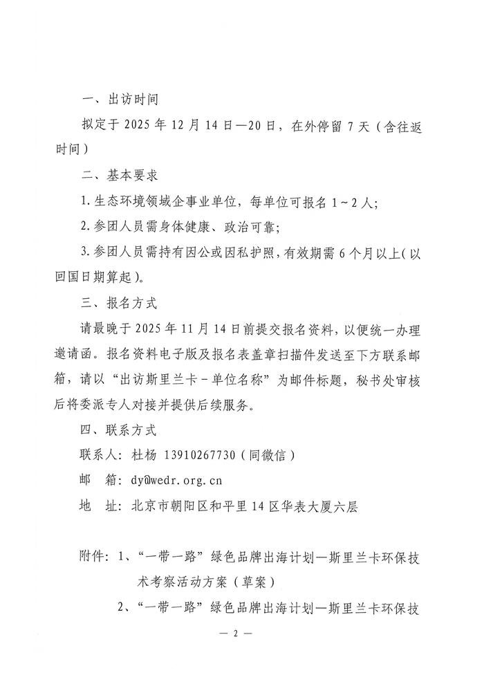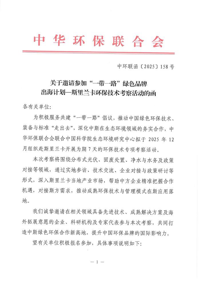 为积极服务共建“一带一路”倡议,推动中国绿色环保技术装备与标准“走出去”,深化中斯在生态环境领域的务实合作,18luck官网app联合中国科学院生态环境研究中心拟于2025年12月组织组织开展为期7天的“一带一路”绿色品牌出海计划——斯里兰卡环保技术专项考察。