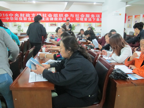 发放《环境权益维护指导手册》并组织参会者填写《环境权益调查问卷》